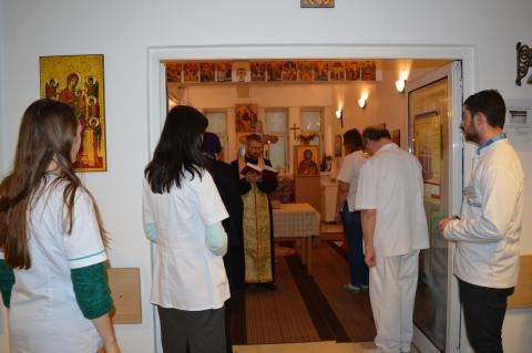 După ce am pășit în saloane, i-am invitat într-un alt cadru, în capela Spitalului, pentru a–i introduce în atmosfera de poveste - a celor 40 Sfinți Mucenici, unde ne-a primit cu căldură părintele capelan Ioan Puiu.
